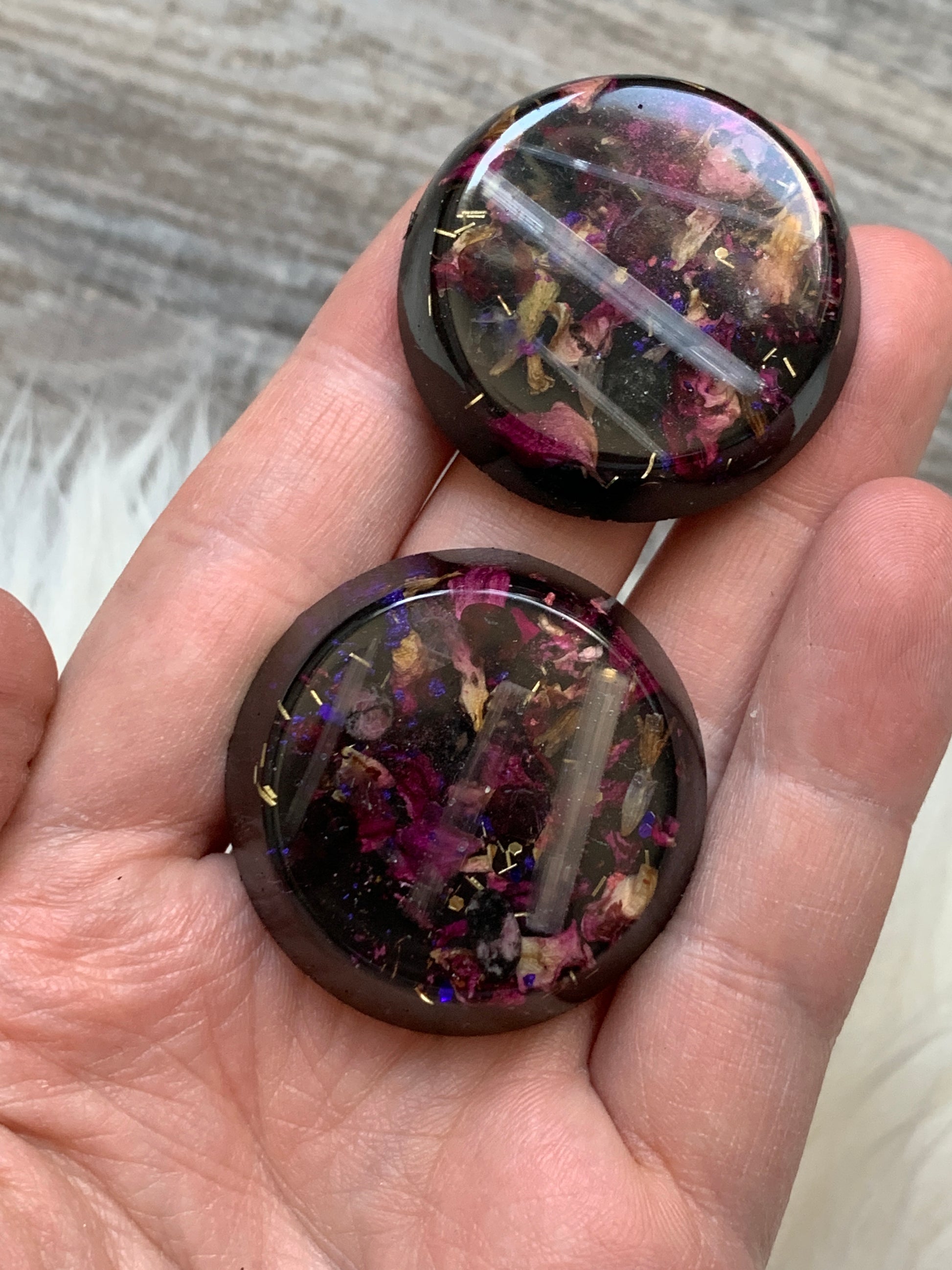Dark Rose Flower and Selenite Mini Disc