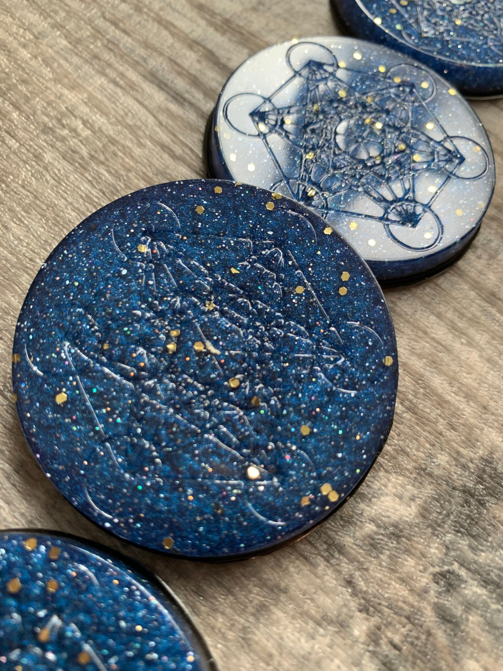 Orgonite® Metatrons Cube ARCTURIAN BLUE Mini Disc - Orgone Generator® - EMF Shield