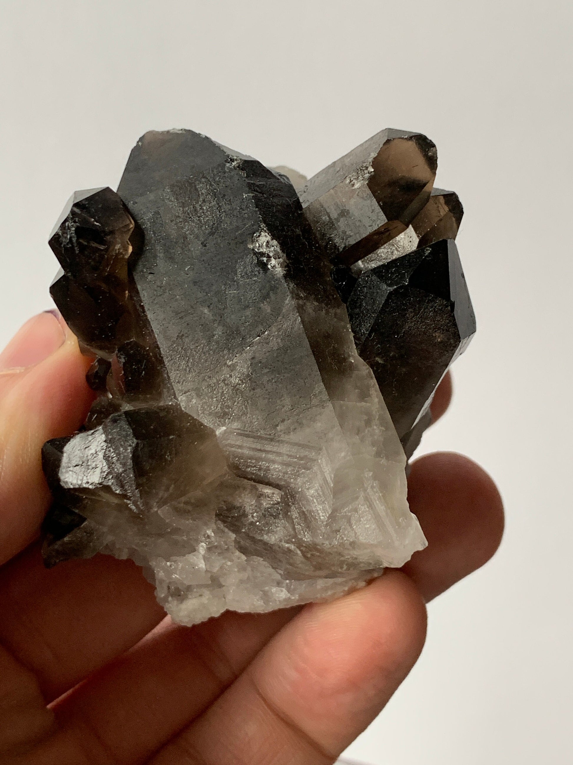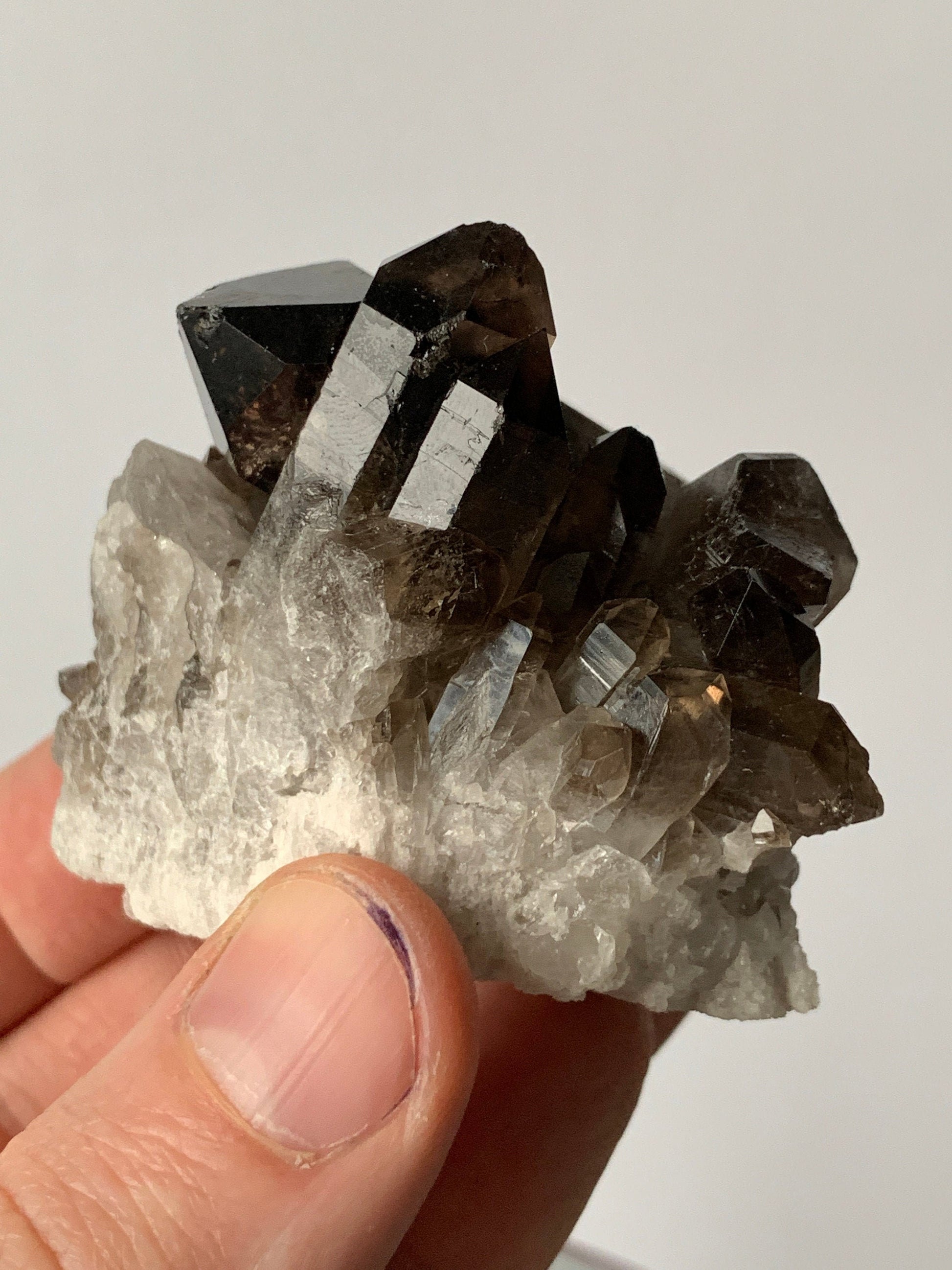 Stunning smoky clusters on crystalline matrix. Smoky quartz is a powerful shamanic crystal that supports energetic healing, cleansing and grounding. This listing is for the exact item pictured. Please see my other listings for more from this lot.
